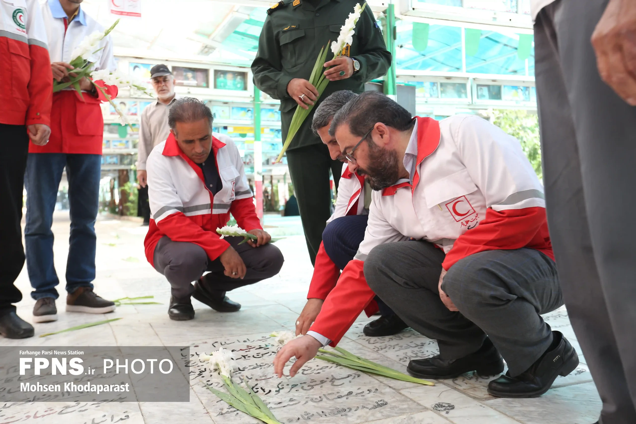 امدادگران ، جوانان و داوطلبان جمعیت هلال احمر استان قم به مناسبت یادواره استانی ۱۴۰ شهید امدادگر استان قم با مقام شامح شهیدان ادای احترام و تجدید عهد کردند.
